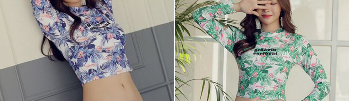 快適な着心地とトレンディーなデザインが融合したフラミンゴボタニカルクロップド丈ラッシュガードセットアップで、夏のスタイリングを格上げしませんか?