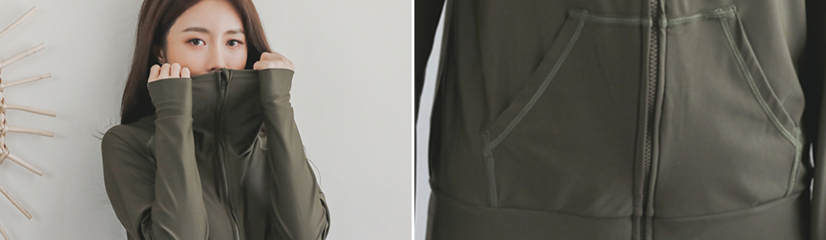 このアースカラーのロングハイネックラッシュガードパーカーは、海やプールでの水泳やサーフィンなどのアクティビティに最適なアイテムです。ラッシュガード素材を使用しているため、紫外線からお肌を守りながら快適に過ごすことができます。