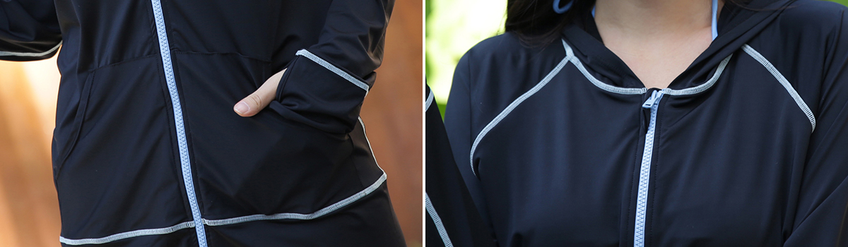 また、フード付きのデザインは日差しや風を防ぎ、体温調節をサポート。長時間のアウトドアでも快適さをキープします。スタイリッシュなデザインで、ファッション性も抜群ですよ。