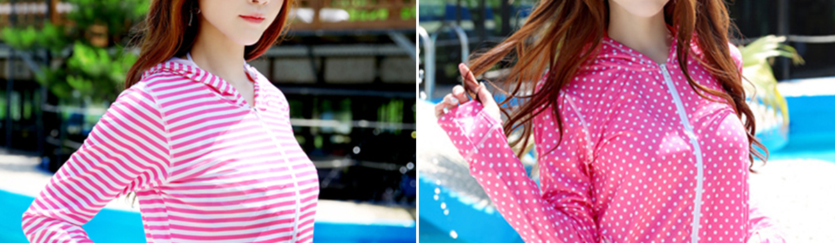 海やプールでのアクティブな水遊びを楽しむために、UVカットフード付きラッシュガードが登場しました。ボーダー柄とドット柄の2つのデザインから選べるこのアイテムは、ファッション性と機能性を両立させた優れものです。