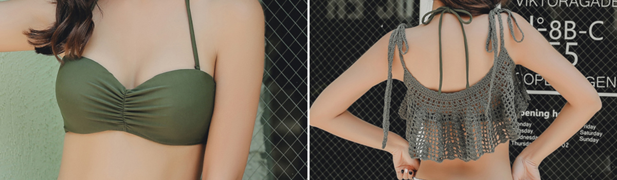 どんな場面でも輝きたい方にぴったりのクロシェキャミで差をつけるビキニ3点セット。この夏、自分を一番輝かせてくれるアイテムとして是非お試しください。