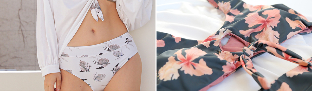 【新生活応援セール最大20%OFF】ロンT付き胸元カットアウト花柄ビキニ3点セット