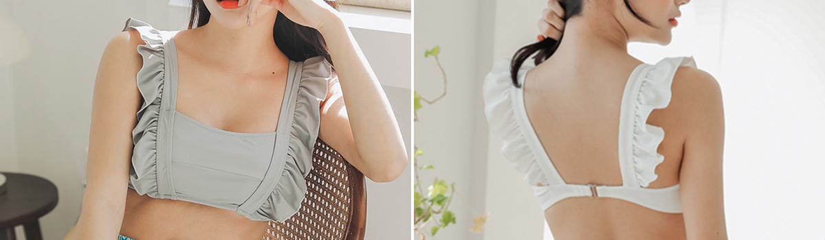 新感覚のスカート付きスクエアネックフリルショルダービキニ3点セットが登場しました。このセットには、肩紐にフリルがあしらわれた可愛らしいブラ、ショーツ、そして女性らしいスカートが含まれています。