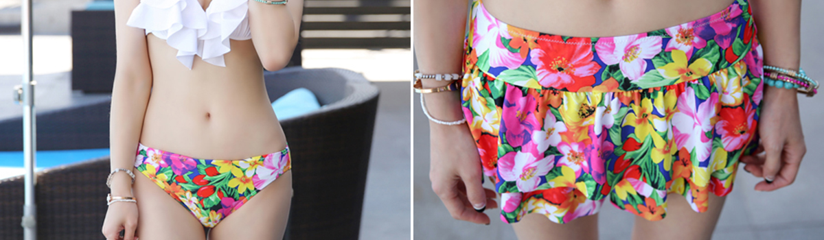 新しい夏のお楽しみがここに登場。鮮やかな花柄ボトムスが肌に映える、スカパンビキニ3点セットがおすすめです