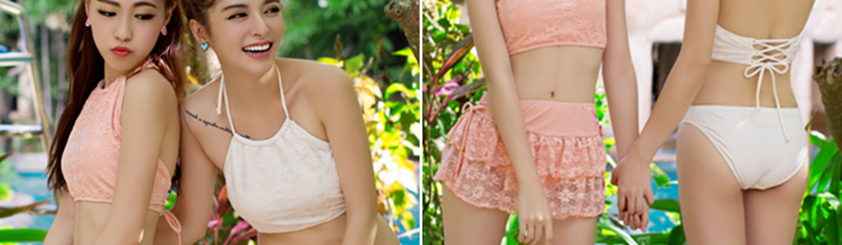 エレガントでフェミニンな魅力を纏う「レースがフェミニンなビブホルタービキニ3点セット」が登場しました。このセットには、ブラ、ショーツ、そしてレースフリルスカートが含まれており、トータルコーディネートが瞬時に完成します。