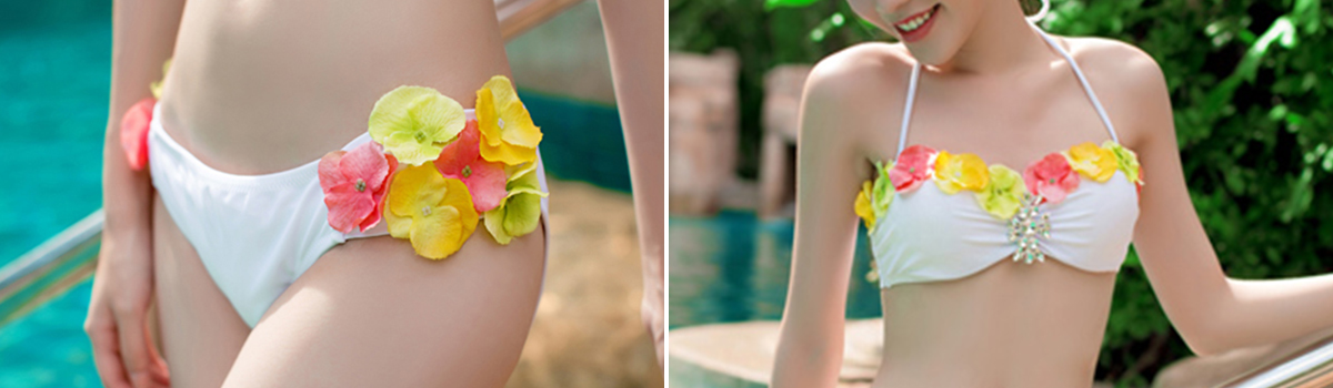 【新生活応援セール最大20%OFF】フロントビジュー花びらバンドゥビキニ2点セット
