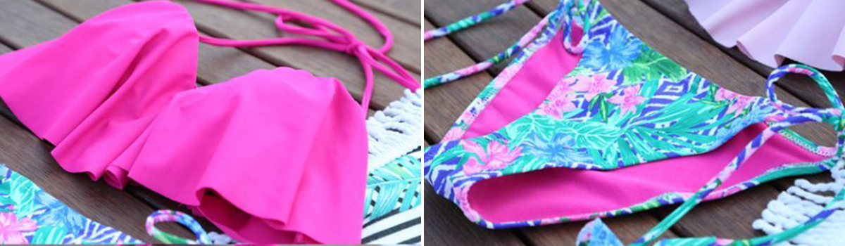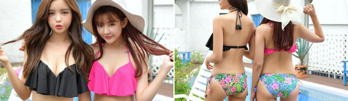 夏のビーチシーンで輝きたいなら、このボリュームフレアブラ×鮮やかハイビスカス柄ビキニ2点セットがおすすめ!