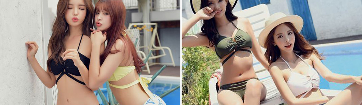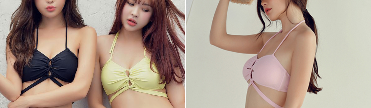 バストアンダーストリングが特徴のブラと、サイドストリングがセクシーな印象を与えるパンツで構成された水着は、まさに夏の主役候補♪水着オンリーでなく、ビーチウェアとしても活躍する嬉しい1着です。