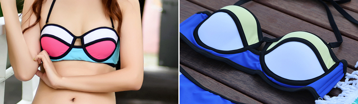 ブラックパイピングにビビットカラーが映える、ビキニ2点セットが登場!トップスとボトムスの2点セットで、水着としてもビーチウェアとしても活躍します。