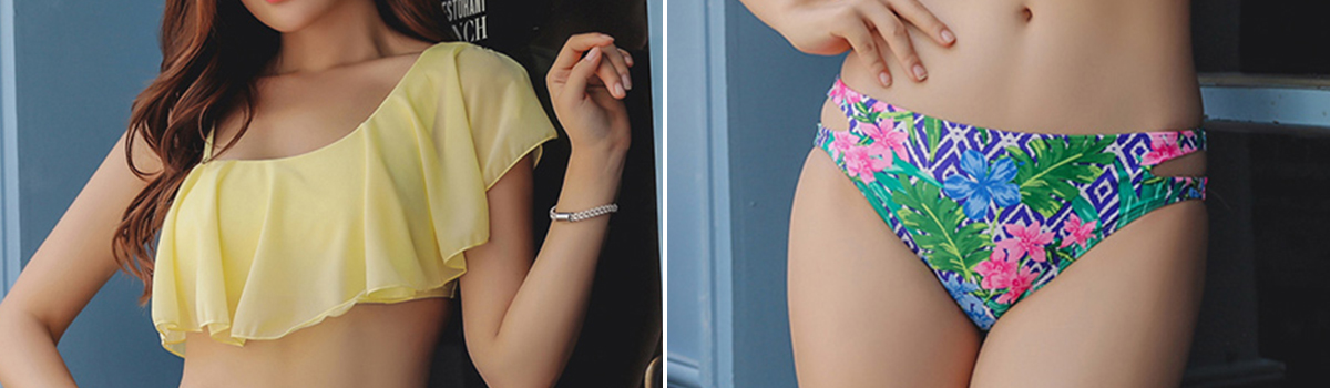 シフォンフレアのトップスは上品さと華やかさを兼ね備え、ハイビスカス柄のサイドカットアウトパンツは大胆でセクシーな印象を与えます。無地と柄の組み合わせがお洒落で、ビーチやプールサイドで目を引くこと間違いなし!