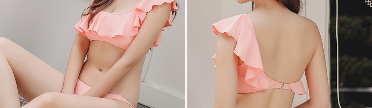 【新生活応援セール最大20%OFF】ワンカラーフリルワンショルダーのビキニ2点セット