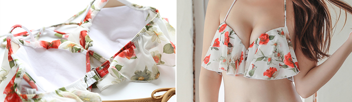 豪華な花柄とフリルが揺れる、夏のビーチシーンで注目を浴びること間違いなしのビキニ2点セットが登場しました!