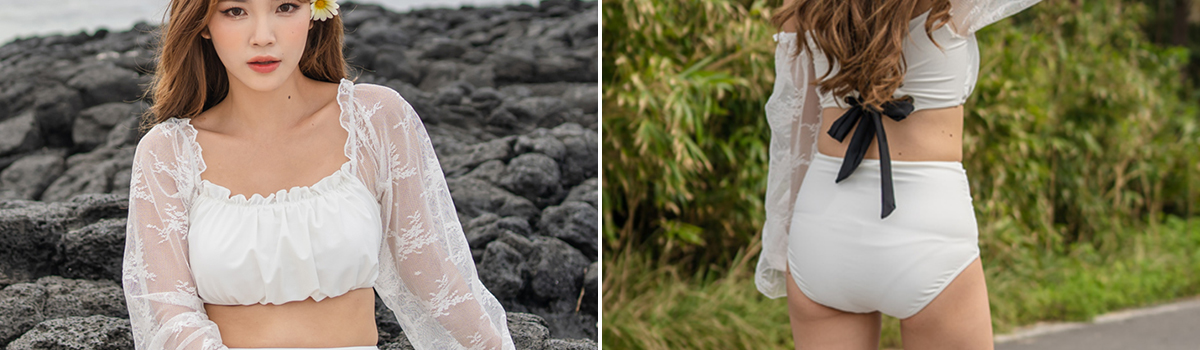 【新生活応援セール最大20%OFF】バックリボンレースアップ長袖トップス×ハイウエストパンツビキニ2点セット