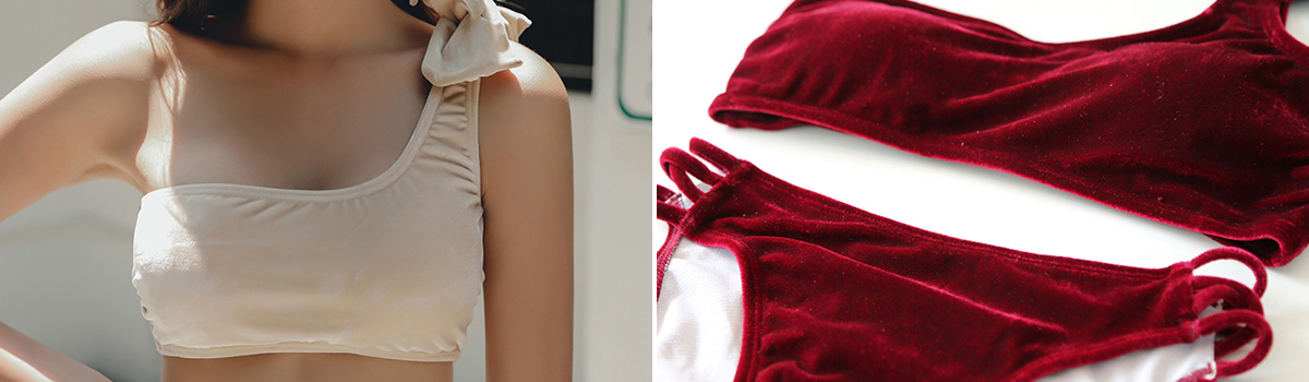 【新生活応援セール最大20%OFF】ベロアワンショルリボンビキニ2点セット