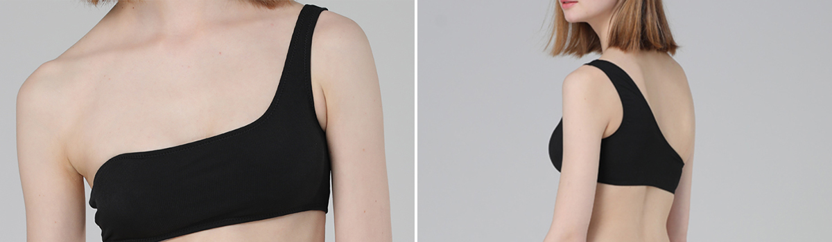 ワンショルダーのブラトップは、肩のラインを美しく引き立てるだけでなく、胸元をセクシーに演出してくれます。リブ素材が体にフィットし、着心地も抜群です。