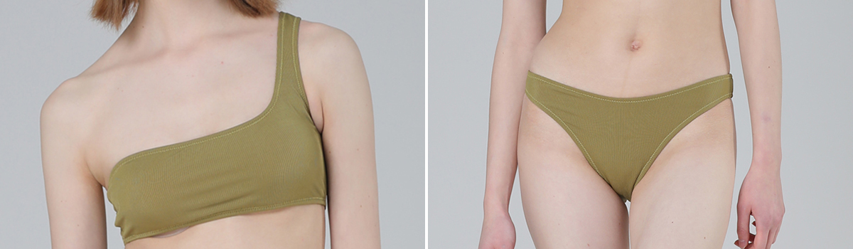 【新生活応援セール最大20%OFF】リブ素材ワンショルシンプルビキニ2点セット