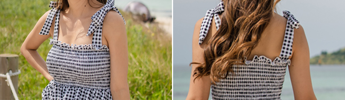 ギンガムチェック柄は季節感溢れるデザインで、ビーチやプールサイドで目を引くこと間違いありません。すっきりとしたデザインで、体型カバーもかなえつつ、おしゃれ度もアップさせてくれる一着です。