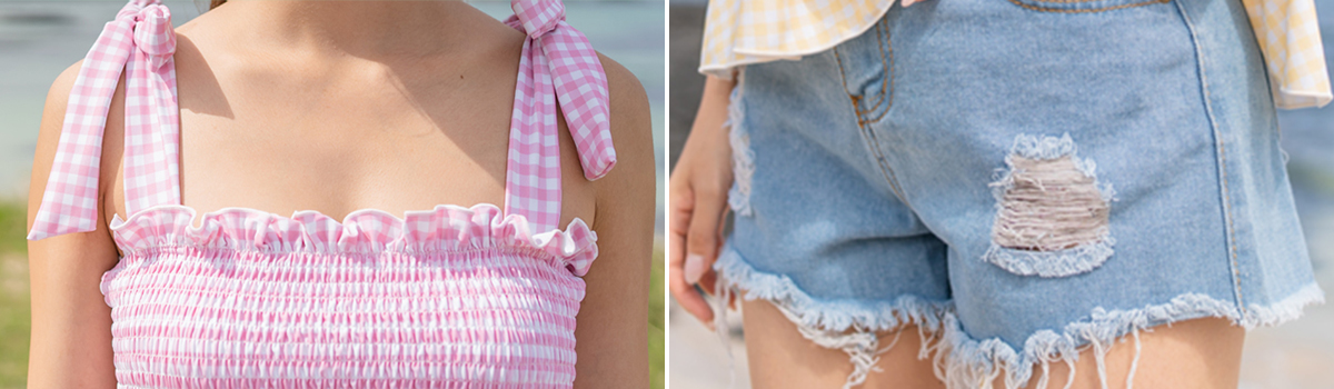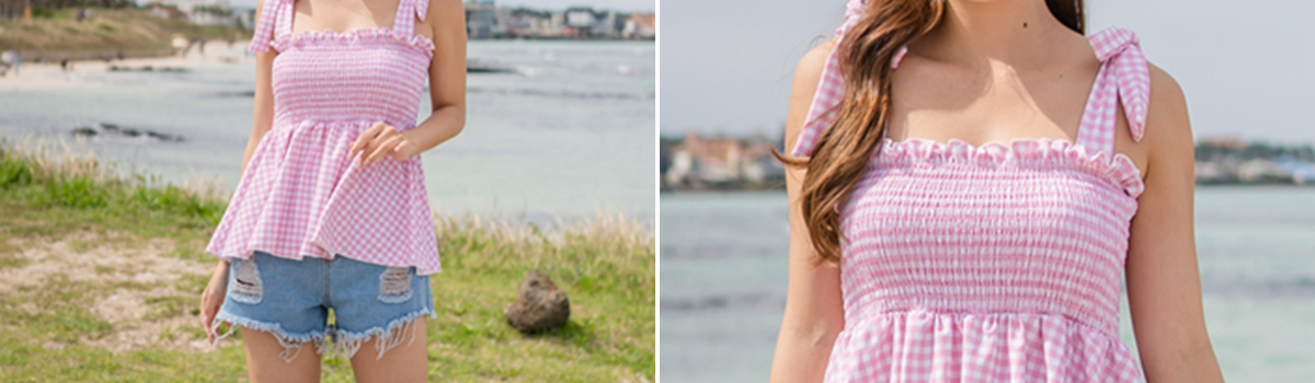 夏の訪れを感じるこの季節、ギンガムチェックペプラムキャミソール水着2点セットで思い出に残る素敵な時間を演出しませんか?