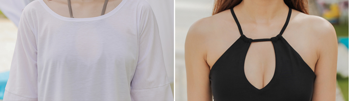 2WAYホルターネックデザインのサイドウエストカットアウトワンピースは、ボディのラインをスタイリッシュに強調しつつ、エレガントな雰囲気を作り上げます。さらに、シンプルな無地デザインの七分袖カットソーは、日焼け対策にもなりつつ、涼しげな装いを叶えます。