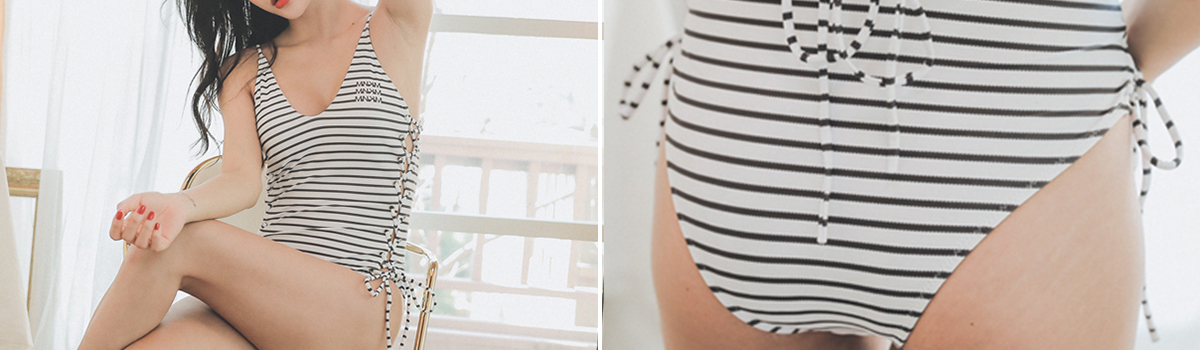 カジュアルに大胆なボーダーサイドレースアップワンピースは、バックリボンとサイドレースアップのデザインが斬新で魅力的な水着です。ボーダー柄がアクセントを添え、他にはない個性を演出します。ビーチやプールサイドでこのワンピースを纏えば、周囲の視線を惹きつけること間違いなしです。