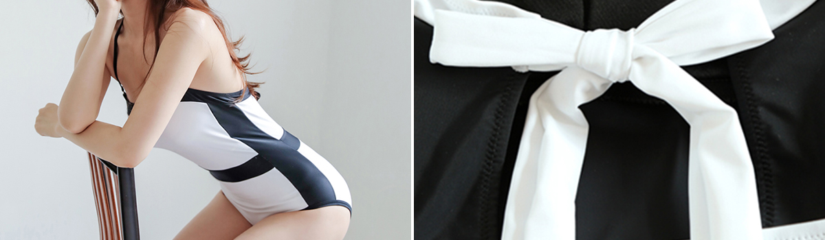 シンプルで洗練されたデザインが目を引く一着です。バックリボンのアクセントが華やかさを演出し、ウエスト切り替えが美しいシルエットを作り出します。水着としても遊び心満載で、ビーチやプールサイドで大活躍間違いなし!