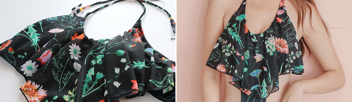 胸元のフリルが女性らしい甘さを演出し、サイドリボンがアクセントになっておしゃれ度をアップさせます。また、サイドウエストのカットアウトデザインがセクシーさをプラスしてくれます。ビーチやプールサイドで着るだけで、周りの視線を釘付けにすること間違いなしです。