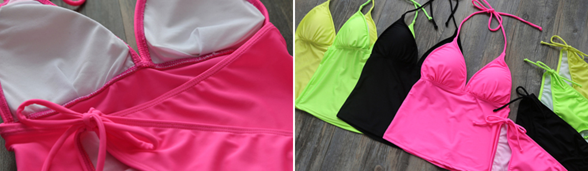 【新生活応援セール最大20%OFF】ネオンカラーがPOPで目を惹くタンキニ水着2点セット