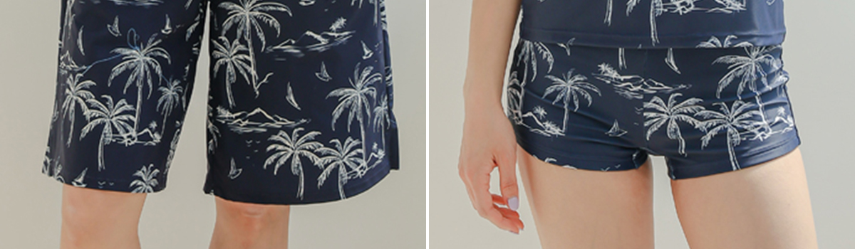 半袖のラッシュガードとハーフパンツは、紫外線から肌を守りながら、体系をしっかりカバーしてくれます。タンキニトップスは、カジュアルなデザインでこなれ感たっぷり!ボーイレッグパンツはシンプルながらも着心地バツグンです。