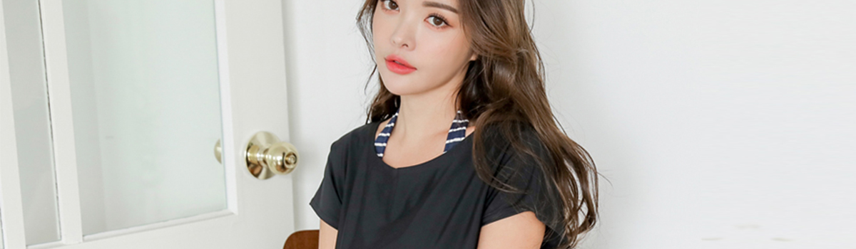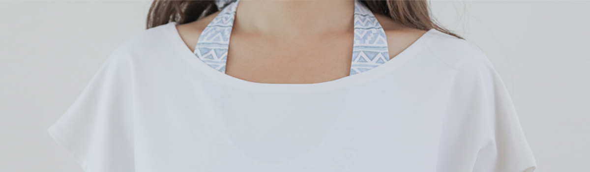 ホルターネックタンキニは体のラインを綺麗にカバーしつつ、女性らしいシルエットを作ってくれます。