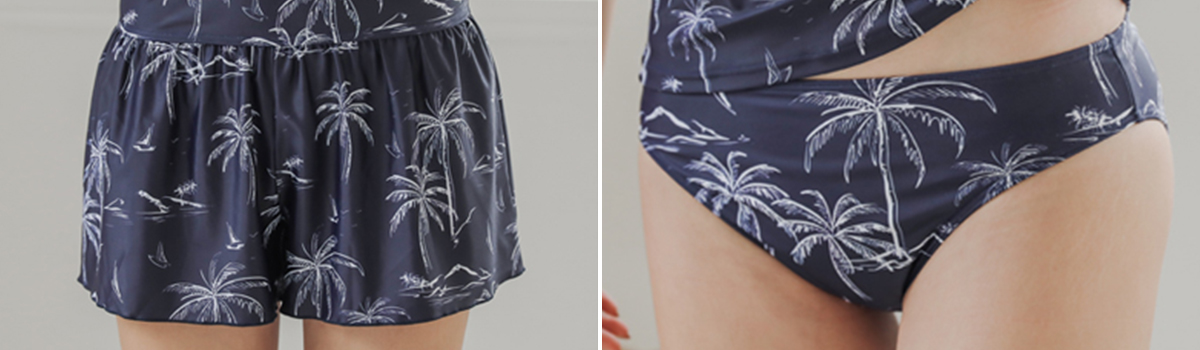 ホルターネックのタンキニトップは、ボディラインを美しく演出し、シアートップスは日焼け対策やちょっとした防寒に便利で、コーディネートのアクセントにもなります。ショートパンツは動きやすく、オン・オフの着こなしを楽しめます。