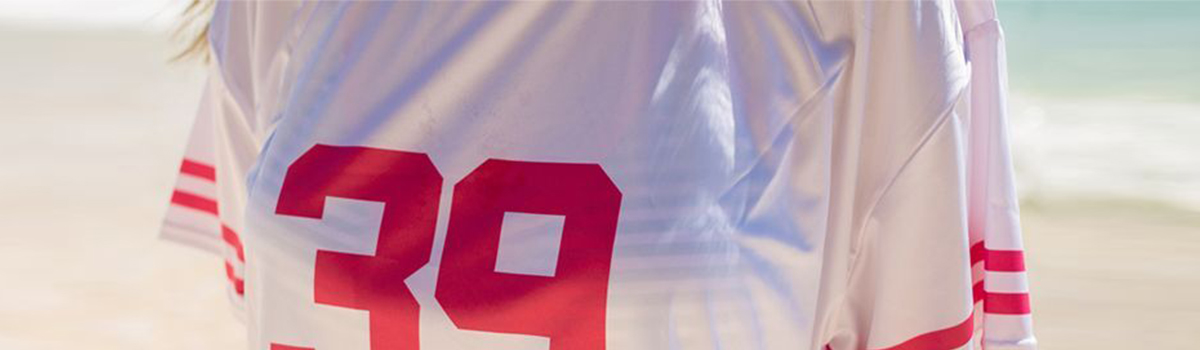 ボーダーデザインが爽やかな印象を与え、ナンバリングがスポーティなアクセントをプラス。カジュアルからアクティブまで幅広いスタイルに対応し、ビーチやプールサイドで存在感を放ちます。