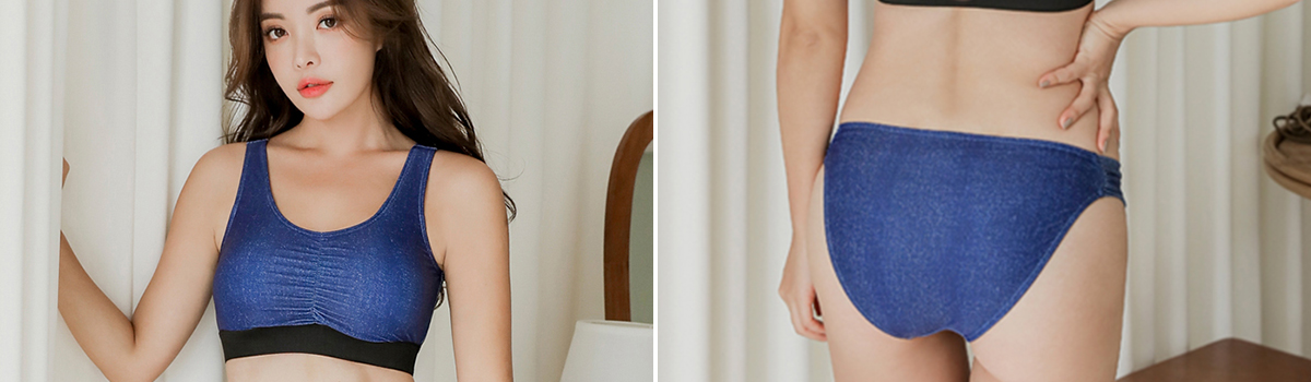 デニムカラーのスポブラタンキニは、モダンでスタイリッシュなデザインが特長。バストをしっかりサポートしてくれます。腰にリボンのついたトップスは、ウエストラインを強調してくれる一方で、自在に調節可能なので自分にぴったりのフィット感を楽しめます。そして、ショートパンツは、カジュアルで履きやすく、動きやすさもバツグンです。