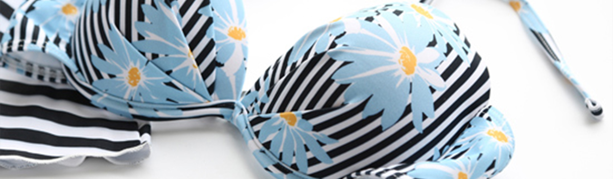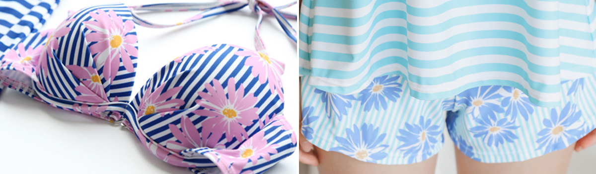 鮮やかな花柄と爽やかなストライプが絶妙に組み合わさった、花柄ストライプ体系カバーアップビキニ4点セットが登場しました。