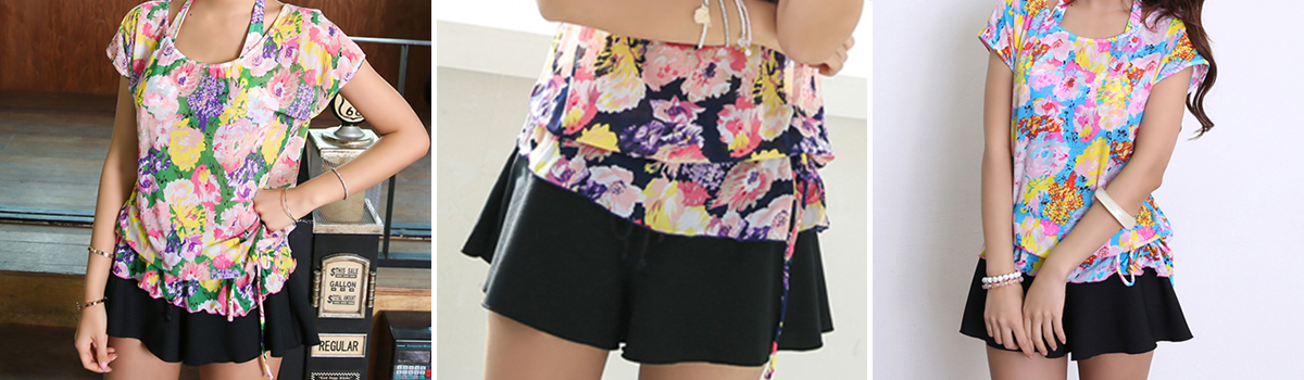 このセットはデザイン性と機能性を兼ね備えた一石二鳥のアイテムです。花柄トップスとショーパンの組み合わせで、他と差をつけたおしゃれを楽しみましょう!