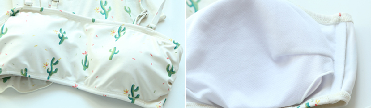 夏のビーチシーンを華やかに彩る、オフショルトップスがヘルシーな小ぶりサボテン柄の体形カバービキニ4点セットが登場しました!