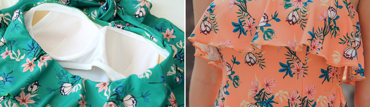【新生活応援セール最大20%OFF】ビビッドなカラーが目を惹く花柄フリルワンピース体形カバー水着3点セット
